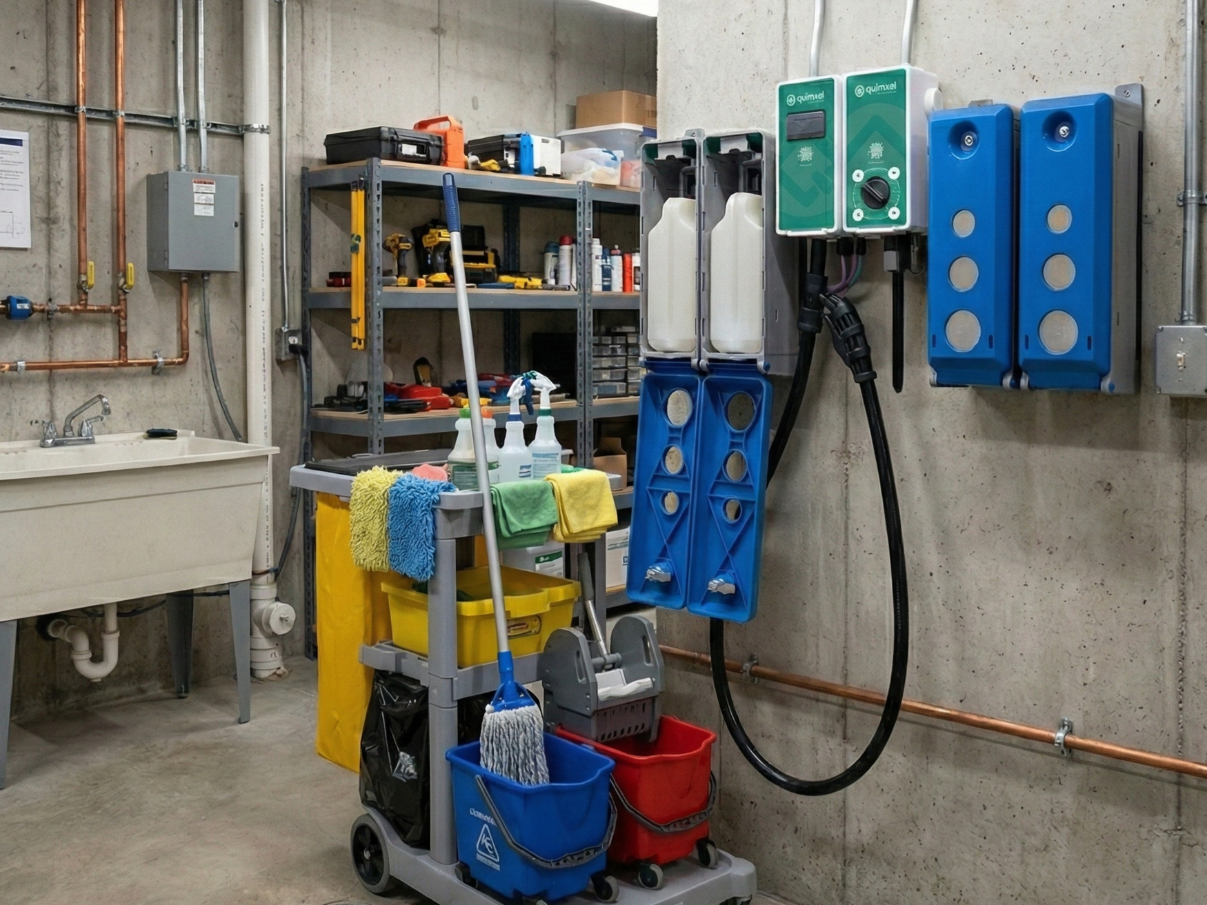 Notre savoir-faire s’étend également à la conception et à l’installation de systèmes professionnels, notamment des centrales de dilution et des systèmes de dosage pour buanderies, offrant à nos clients des solutions clés en main, efficaces et durables.